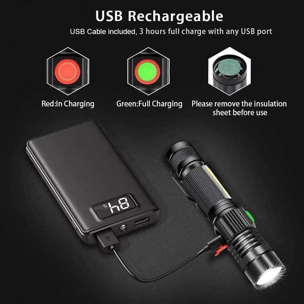 Construída com liga de magnésio ultra resistente, essa lanterna é indestrutível e possui proteção IPX6, sendo totalmente resistente à água e impactos.
